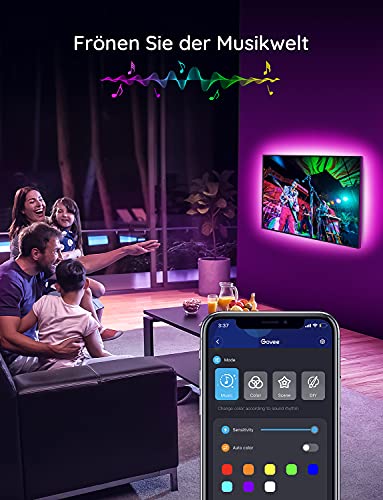 Die Musikwelt genießen: Mit eingebautes Mikrofon ausgestattet, die Helligkeit und die Farbe der TV Lichtstreifen synchronisieren sich automatisch entsprechend mit der Hintergrundmusik., Mehrere mühelose Kontrolle verfügbar: Steuern Sie die LED Streifen durch den Controller oder Govee Home App...