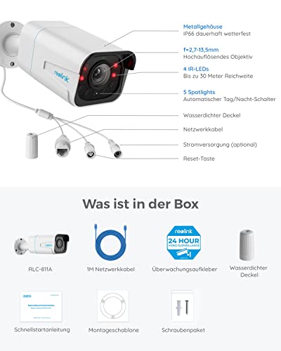 Reolink 4K Smarte PoE IP Kamera Outdoor mit Personen-/Autoerkennung