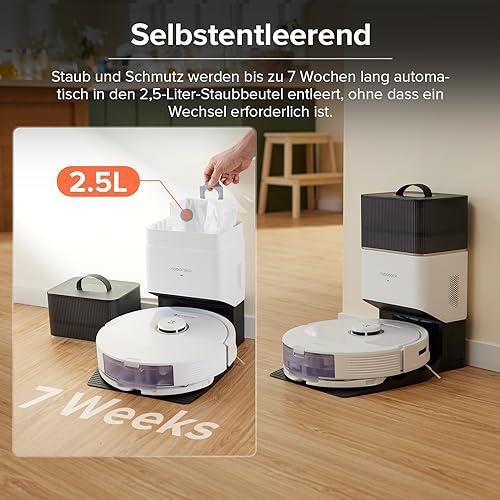 Ein weiteres herausragendes Merkmal des Roborock Q8 Max Plus ist die mitgelieferte Absaugstation. Diese innovative Station entleert den Staubbehälter des Roboters automatisch, was Dir Zeit und Aufwand spart. So kannst Du Dich entspannen und die freie Zeit genießen, während Dein Roboter die Hausarbeit erledigt.