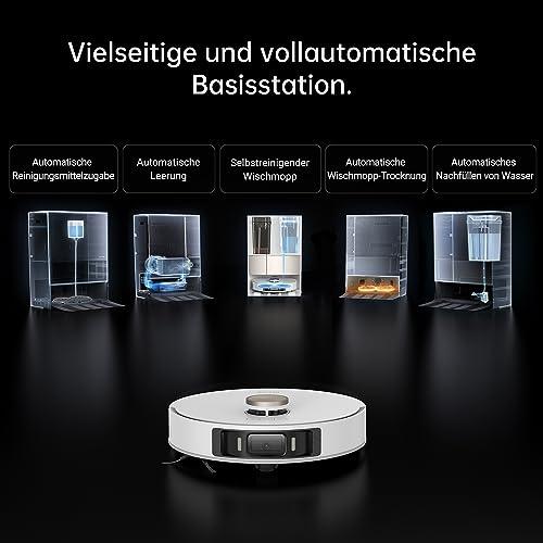 - Vollautomatische Basisstation: Automatisiere deine tägliche Reinigung und genieße stets frisch gereinigte Böden. Die Station kümmert sich um Entleerung, Moppreinigung und -trocknung sowie um das Auffüllen des Wassertanks.
