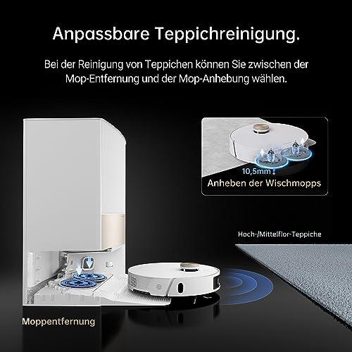 Eine herausragende Funktion des Dreame L20 Ultra ist seine Fähigkeit, Teppiche mittels Ultraschall-Technologie zu erkennen und die Wischpads entsprechend zu entfernen, um sie trocken zu halten. Diese innovative Technologie stellt sicher, dass deine Teppiche während des Reinigungsprozesses geschützt bleiben.