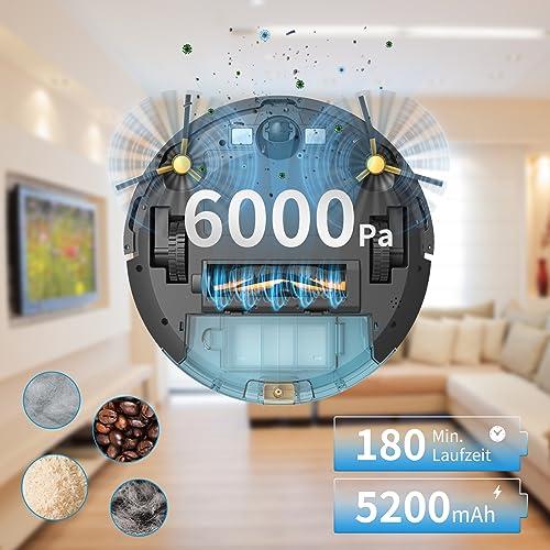 Seine leistungsstarke Lithium-Batterie mit 5200mAh liefert eine unschlagbare Betriebsdauer.Bis zu 150 Minuten, also zweieinhalb Stunden, reinigt er dein Zuhause. Und keine Sorge, wenn die Batterieleistung nachlässt, lädt er sich automatisch wieder auf.