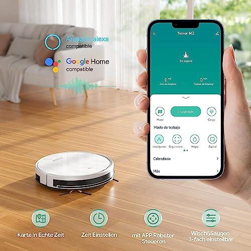 Du hast die volle Kontrolle über die Reinigungsarbeiten. Steuere den Roboter bequem über die Tesvor App und wähle zwischen fünf verschiedenen Reinigungsmodi. Du kannst den Tesvor M2 auch sprachgesteuert über Alexa oder Google Home verbinden.