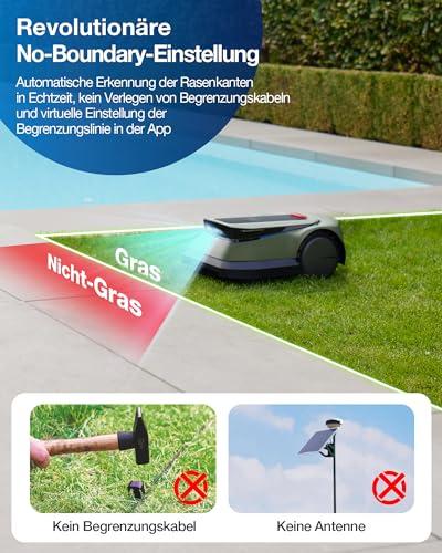Warum solltest du noch Zeit mit lästigen Begrenzungseinstellungen verschwenden? Der GOAT GX-600 nutzt modernste SmartEdge-Technologie zur Spürung verschiedener Bodentexturen und Materialien und zur intelligenten Erfassung sämtlicher Umgebungsinformationen. Diese fortschrittliche Technologie ermöglicht eine sehr genaue Grenzerkennung und macht die manuelle Einrichtung überflüssig, wodurch die Installationszeit um bis zu 93 % reduziert wird.