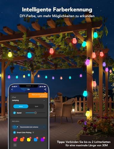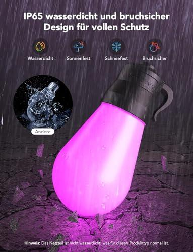 Die Govee Lichterkette Außen, Smart LED Wifi RGBICW Glühbirnen ist genau das, was du brauchst, um deinen Outdoor-Bereich mit einem wunderschönen Lichtspektakel zu verwandeln. Diese smarten LED-Lichterketten sind mehr als nur eine einfache Lichtquelle - sie sind ein echtes Lifestyle-Produkt, das dir hilft, dein Zuhause in ein farbenfrohes, lebendiges und dynamisches Lichterlebnis zu verwandeln.
