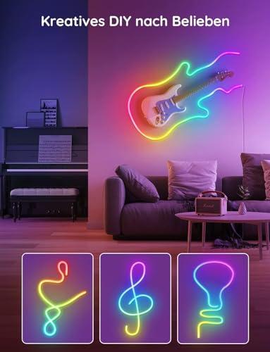 Füge deinem Spielzimmer, Wohnzimmer, Schlafzimmer oder Feiertagsdekorationen einen ausdrucksstarken und anpassbaren Neon LED Strip-Look hinzu. Mit dem Govee Neon LED Strip 3m erlebst du ein aufregendes DIY-Beleuchtungserlebnis.