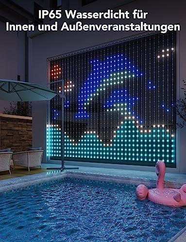Diese einzigartigen Curtain Lights haben eine Größe von 1,5 x 2 m und umfassen beeindruckende 520 tropfenförmige Lichtkugeln, wodurch eine hohe Pixeldichte ermöglicht wird. Das Beste daran ist, dass Du drei Sets synchronisieren kannst, um noch klarere Muster und Bilder für Deine Weihnachtsdekoration oder andere Veranstaltungen zu erzeugen.
