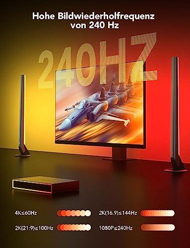 Die Govee HDMI Gaming Sync Box unterstützt hohe Bildwiederholraten und Auflösungen. Du kannst mit bis zu 240Hz bei 1080p, zusätzlich 144Hz 2K & 60Hz 4K spielen. Dabei ist auch HDR10+ Unterstützung gegeben